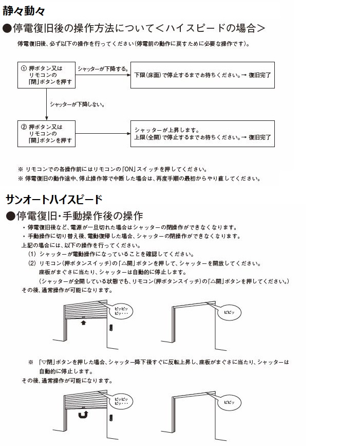 シャッターが一方向にしか動かない場合も、上限・下限で停止するまでお待ちください。復旧完了となります。