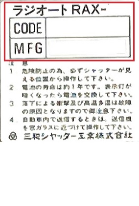 電動シャッター用リモコン ラジオートRAX-111/111T詳細情報