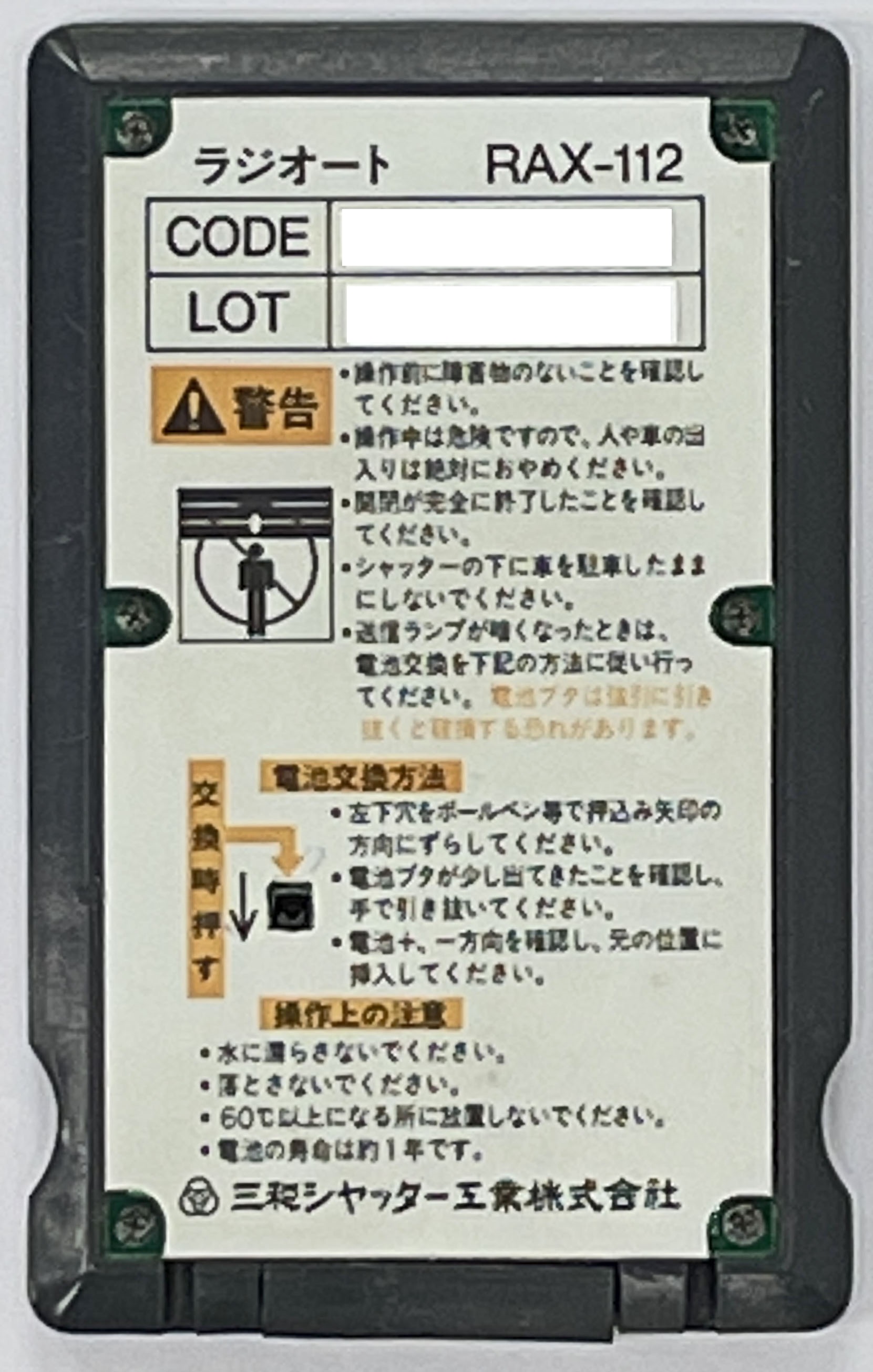 電動シャッター用リモコン ラジオート(カード型)RAX-112/112T詳細情報
